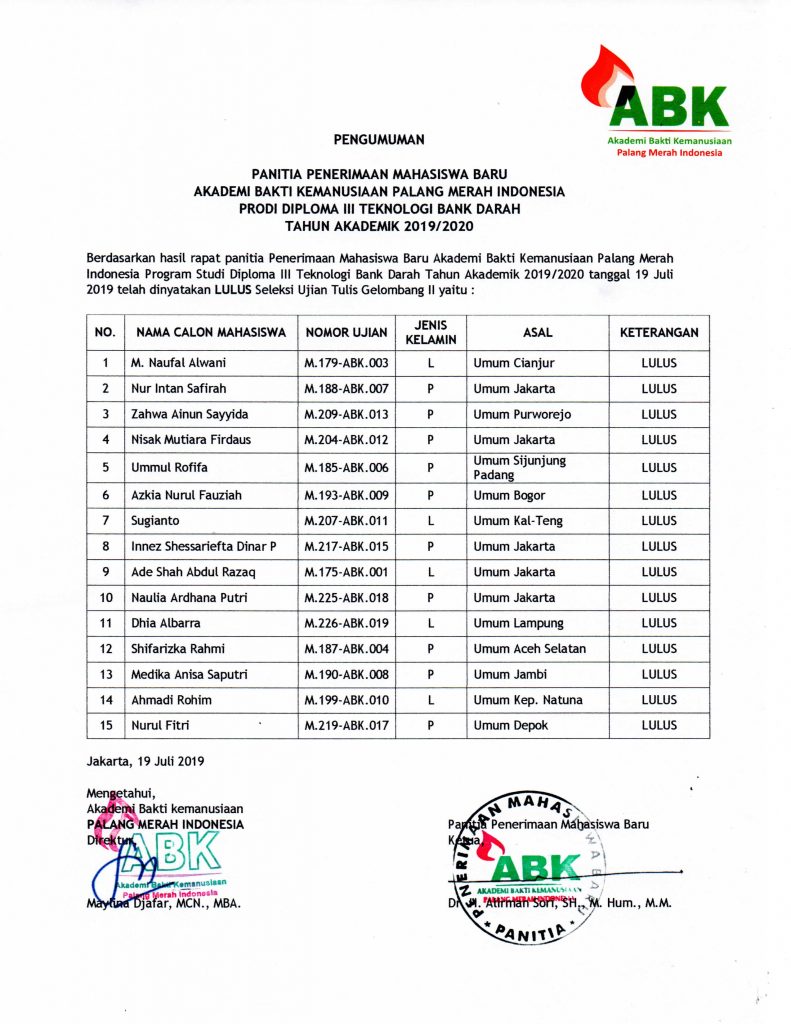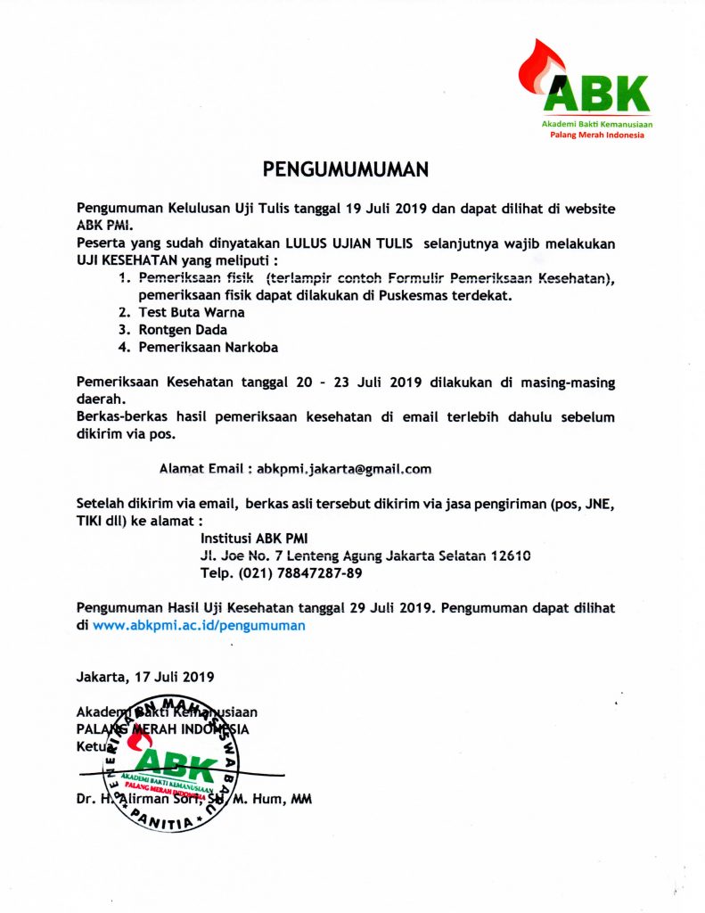 PENGUMUMAN UJI TULIS GEL 2 T.A 2019/2020 & FORMULIR UJI KESEHATAN